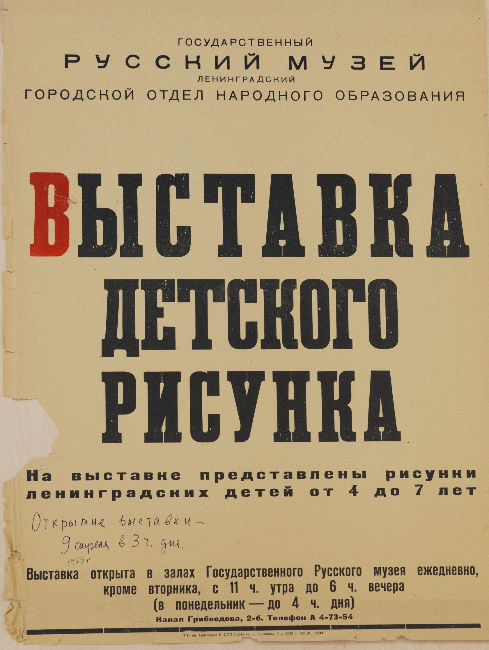 Русскому музею принадлежит уникальная коллекция произведений детского художественного творчества, создание которой началось 1959 г. Русский музей одним из первых художественных музеев предоставил свои залы для юных творцов.